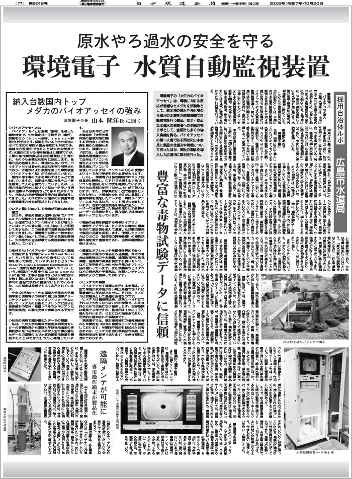 - 2016-04-01 水質自動監視装置「メダカのバイオアッセイ」は累計生産台数が200台を超えました。